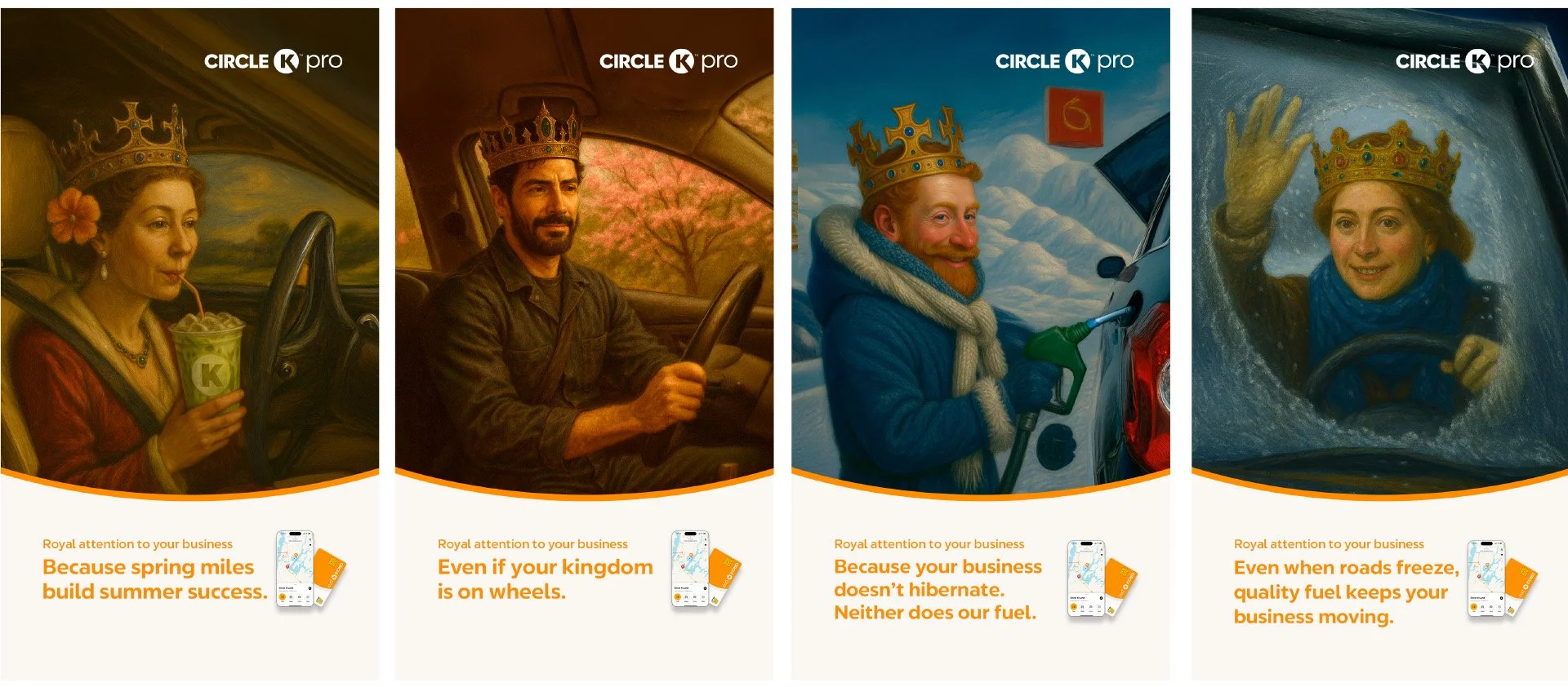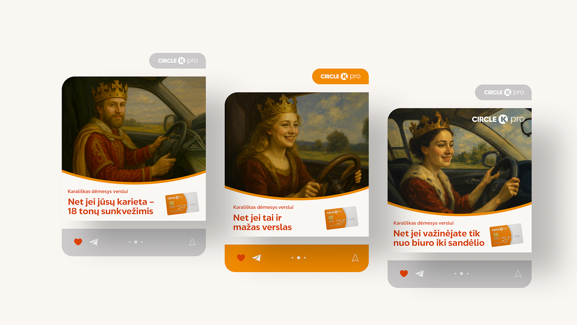 Atsispyrėme nuo minties, kad kiekvienas mažas verslas, naudodamas tinkamas priemones, gali tapti didžiuoju. O kol mažas ar vidutinis verslas dar kelyje – „Circle K“ pasirūpins, kad ši kelionė būtų sklandi ir karališka. Pasodinome karalius ir karalienes už vairo, palinkėdami sėkmingos kelionės.